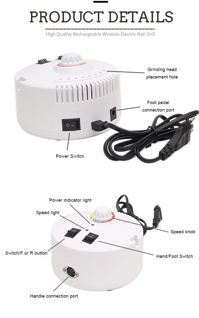 Ensemble de perceuse à ongles portable électrique avec moteur puissant 65w 35000 tr/min