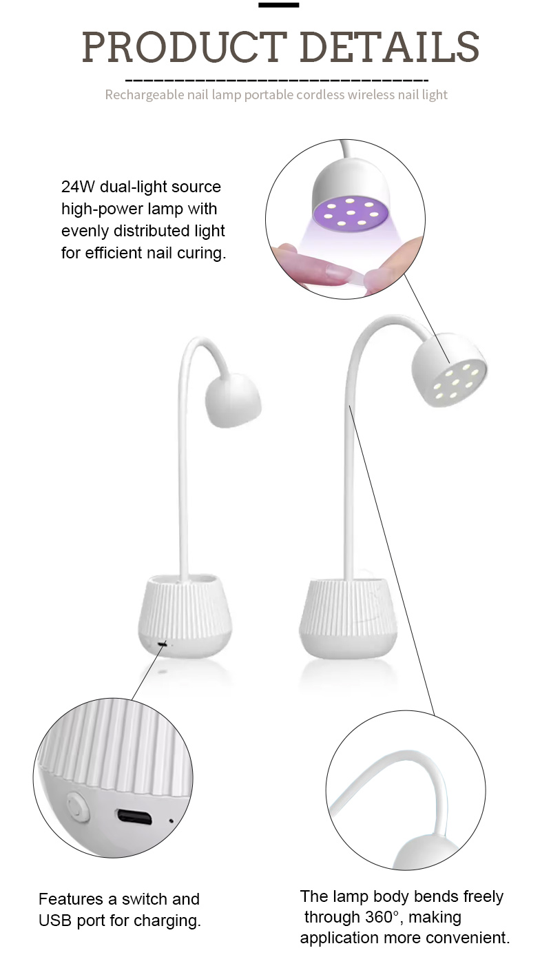 Le produit assure un séchage uniforme de la colle sans retrait. Ses deux sources de lumière fournissent un chauffage doux pour éviter la décoloration des mains et la fatigue oculaire, adaptées aux mains et aux pieds, offrant des résultats de séchage remarquablement rapides.