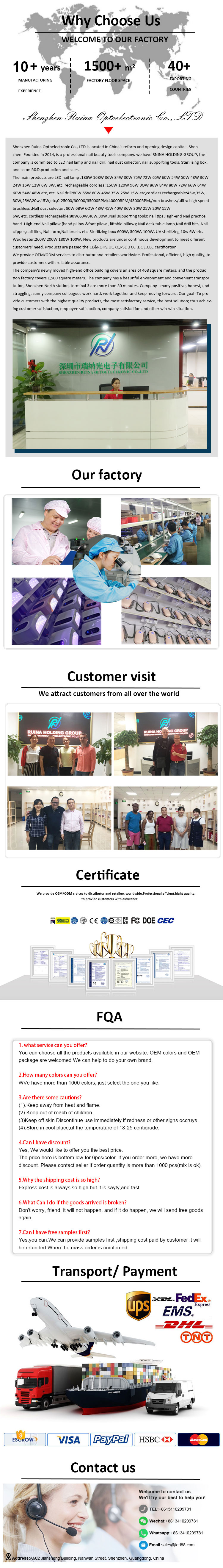 NOUVEAU STYLE CURVE COURVE COUPE COUPERS NOIShenzhen Ruina Optoelectronics Co., Ltd., en tant que principal fabricant, fournisseur et exportateur chinois de lampe compacte de séchage des ongles en gel, défend systématiquement la philosophie de recherche d'une qualité parfaite. Cet engagement a valu à nos lampes à ongles adhésives UV à usage domestique la confiance de nombreux clients. Une conception exceptionnelle, des matières premières de première qualité, des performances exceptionnelles et des prix très compétitifs : voilà précisément ce que chaque client attend et ce que nous proposons. Bien entendu, un service après-vente complet est également indispensable.