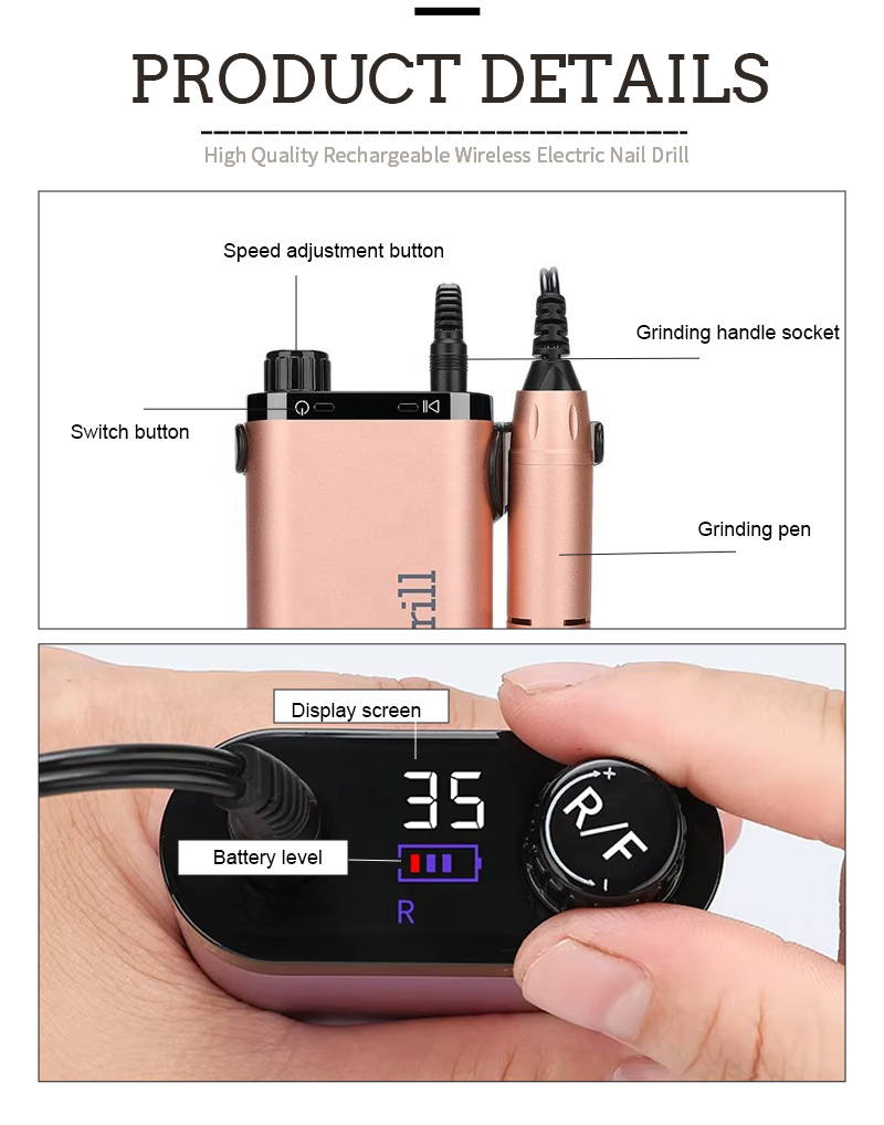 Ensemble de perceuse à ongles portable électrique avec moteur puissant 65w 35000 tr/min