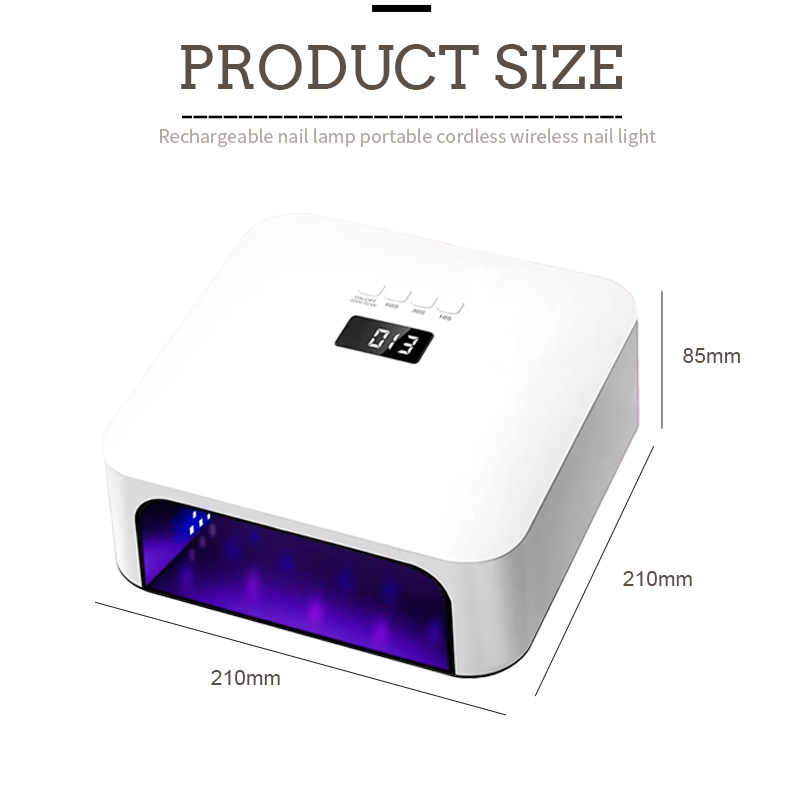 Les dimensions de cette lampe à séchage rapide des ongles de haute qualité sont de 210 mm de longueur, 210 mm de largeur et 85 mm de hauteur, avec une grande capacité et la possibilité d'utiliser les deux mains et les pieds, ce qui est très pratique.