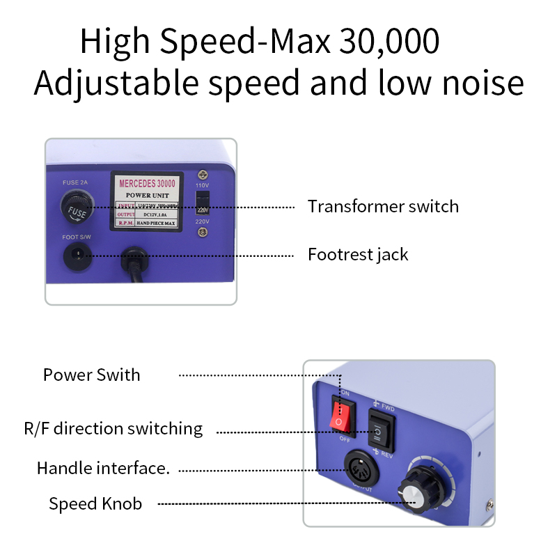 Perceuse à ongles électrique pas facile à endommager, pièce à main 65w 35000rpm