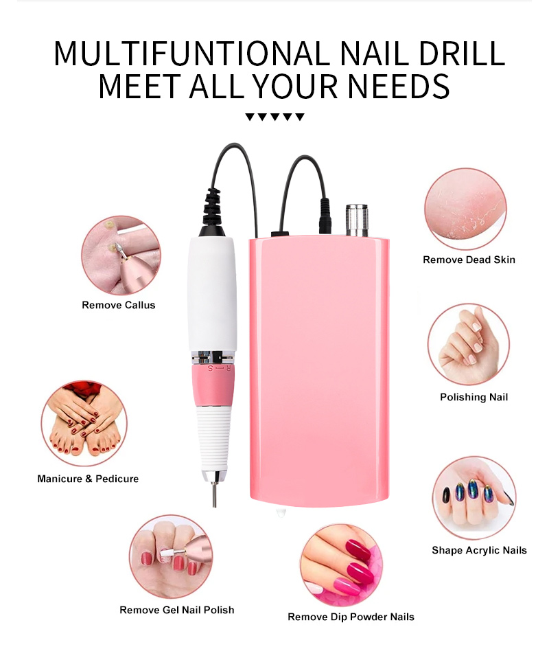 Ensemble de perceuse à ongles portable électrique avec moteur puissant 65w 35000 tr/min