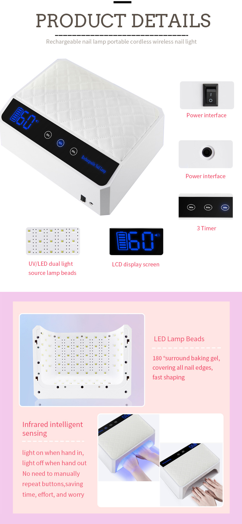 Équipée d'une technologie de détection intelligente infrarouge, la lumière s'active lorsque les mains s'approchent et se désactive lorsque les mains s'éloignent, éliminant ainsi le besoin d'appuyer manuellement sur les boutons de manière répétée, ce qui permet d'économiser du temps et des efforts. Le séchage de la colle à haute puissance ne nécessite pas de longues périodes d'attente, ce qui permet d'économiser du temps et des efforts.