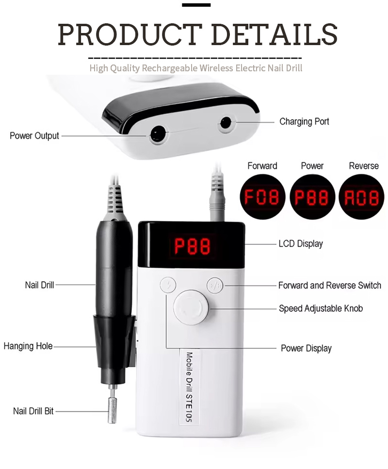 Ensemble de perceuse à ongles sans fil rechargeable professionnel 45w 40000 tr/min