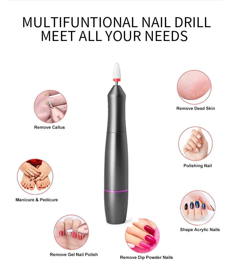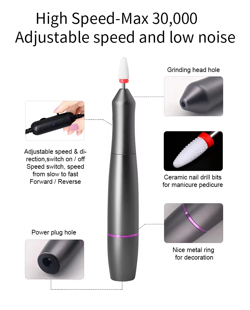 Caractéristique du produit et application de la perceuse à ongles en forme de stylo à faible bruit