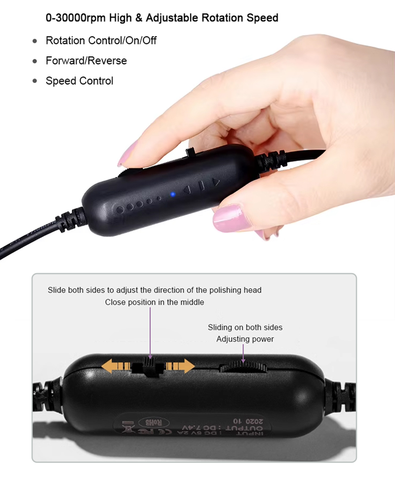 1, vitesse réglable, moteur puissant, ponçage à grande vitesse, réglage de la vitesse en temps réel par bouton en continu.