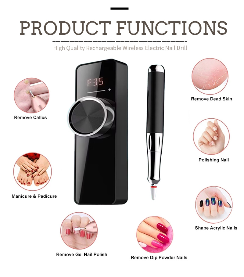 Caractéristiques du produit et applications de la lime à ongles électrique haute vitesse modèle 109, 35 000 tr/min, pour enlever le vernis.
