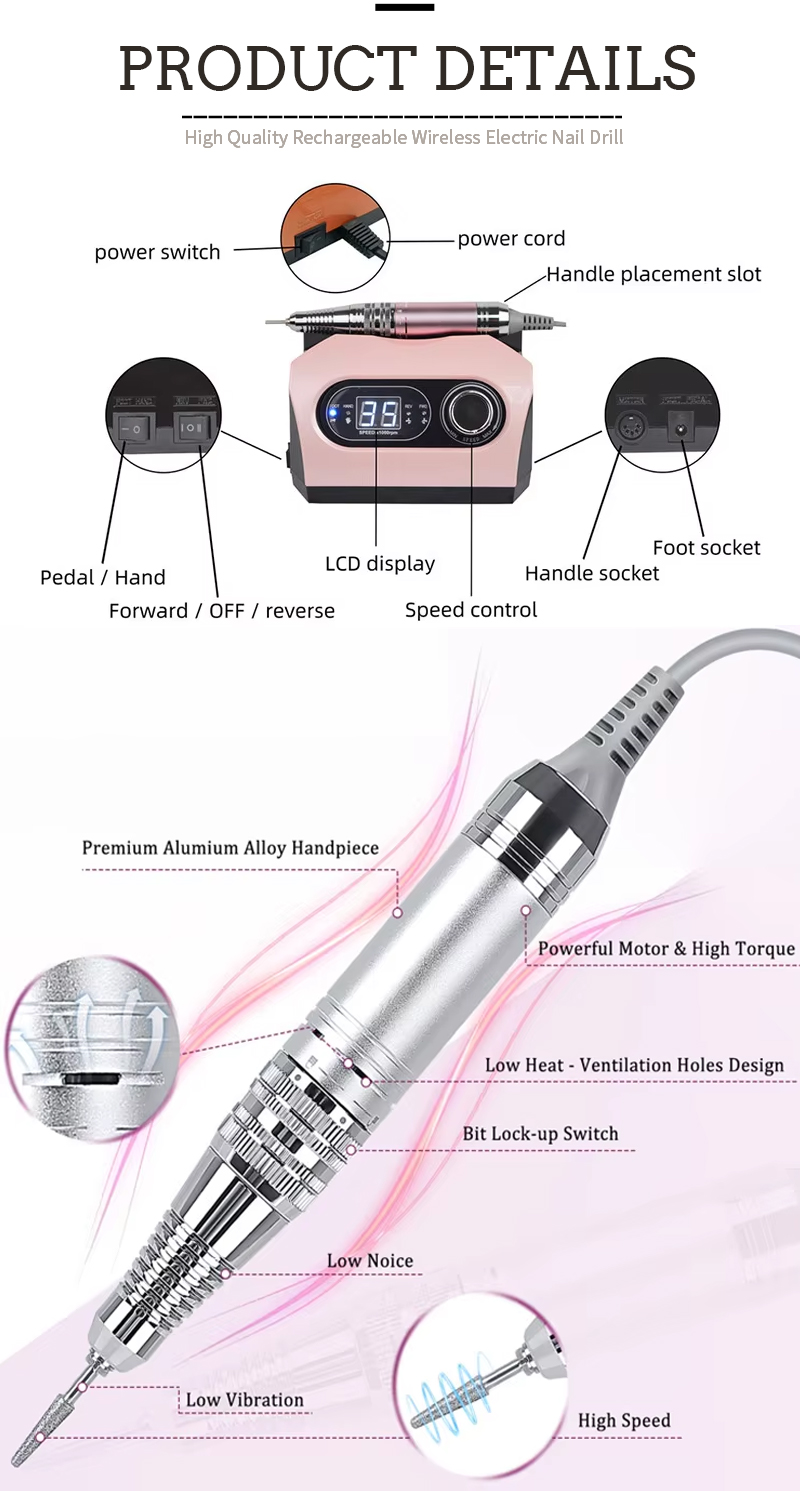 Ensemble de perceuse à ongles portable électrique avec moteur puissant 65w 35000 tr/min