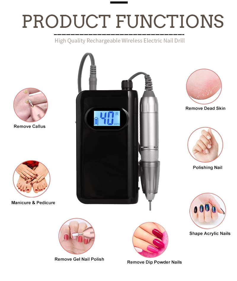 Ensemble de perceuse à ongles portable électrique avec moteur puissant 65w 35000 tr/min