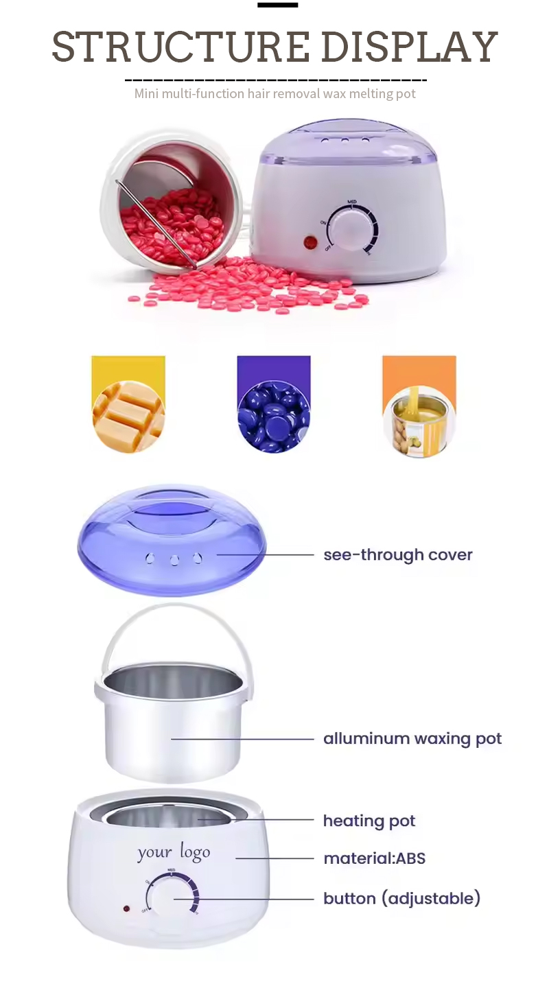 La machine à cire du produit utilise principalement un anneau chauffant pour générer de la chaleur et fait fondre la cire solide en générant de la chaleur. 100 g de grains de cire n'ont besoin que de dix minutes pour fondre.