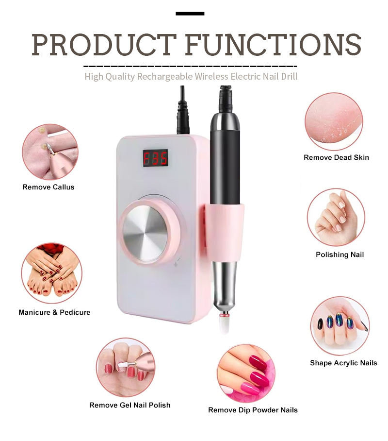 Ensemble de perceuse à ongles rechargeable, perceuse à ongles sur les doigts des orteils 35w 35000rpm