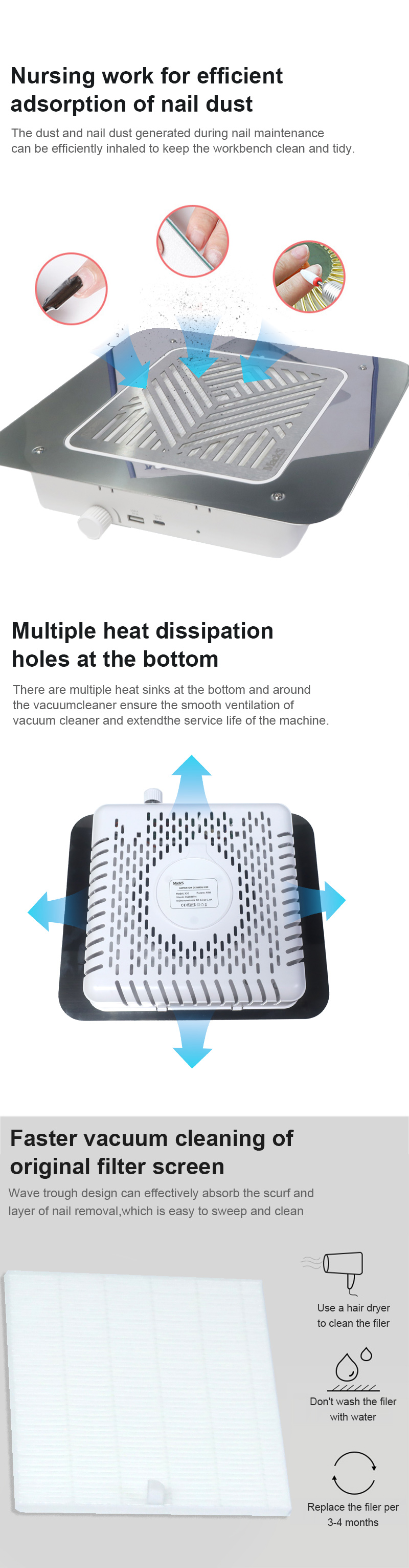 3, le filtre à poussière peut être remplacé régulièrement pour garantir l'effet.