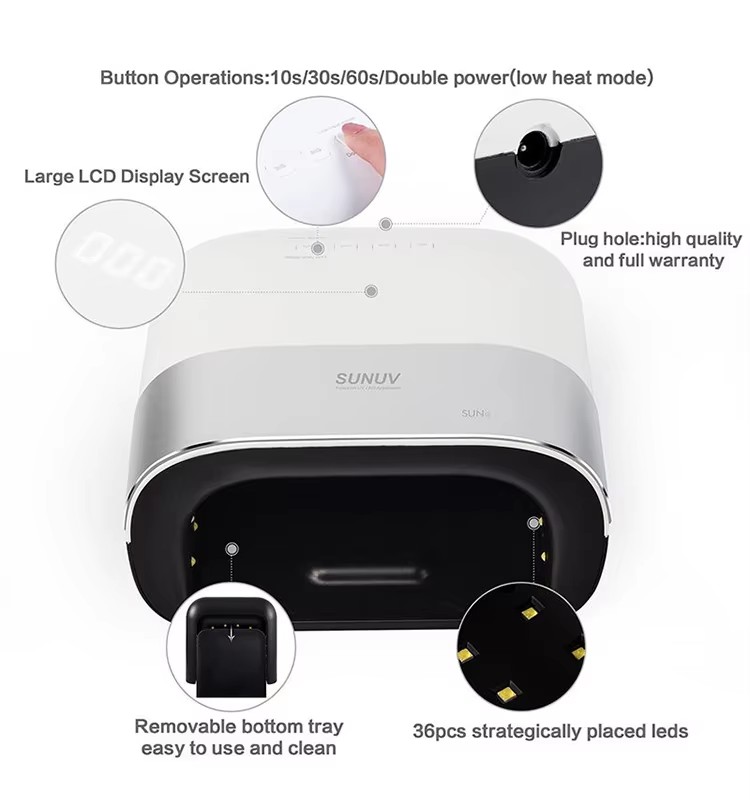 2)Salon de manucure de manchons rechargeable Séchante légère UV 48W Apparence du produit Design simple et beau, facile à démonter et à installer, facile à nettoyer, facile à transporter léger.